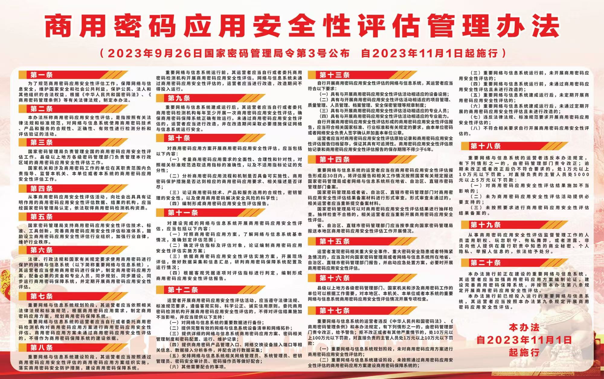 我司积极响应并深入贯彻、执行《中华人民共和国密码法》、《商用密码管理条例》及《商用密码检测机构管理办法》,并于今天顺利获得了《商用密码检测机构》资质。这一突破是对金阳高科在密码测评领域深厚积淀与技术实力的权威认证!